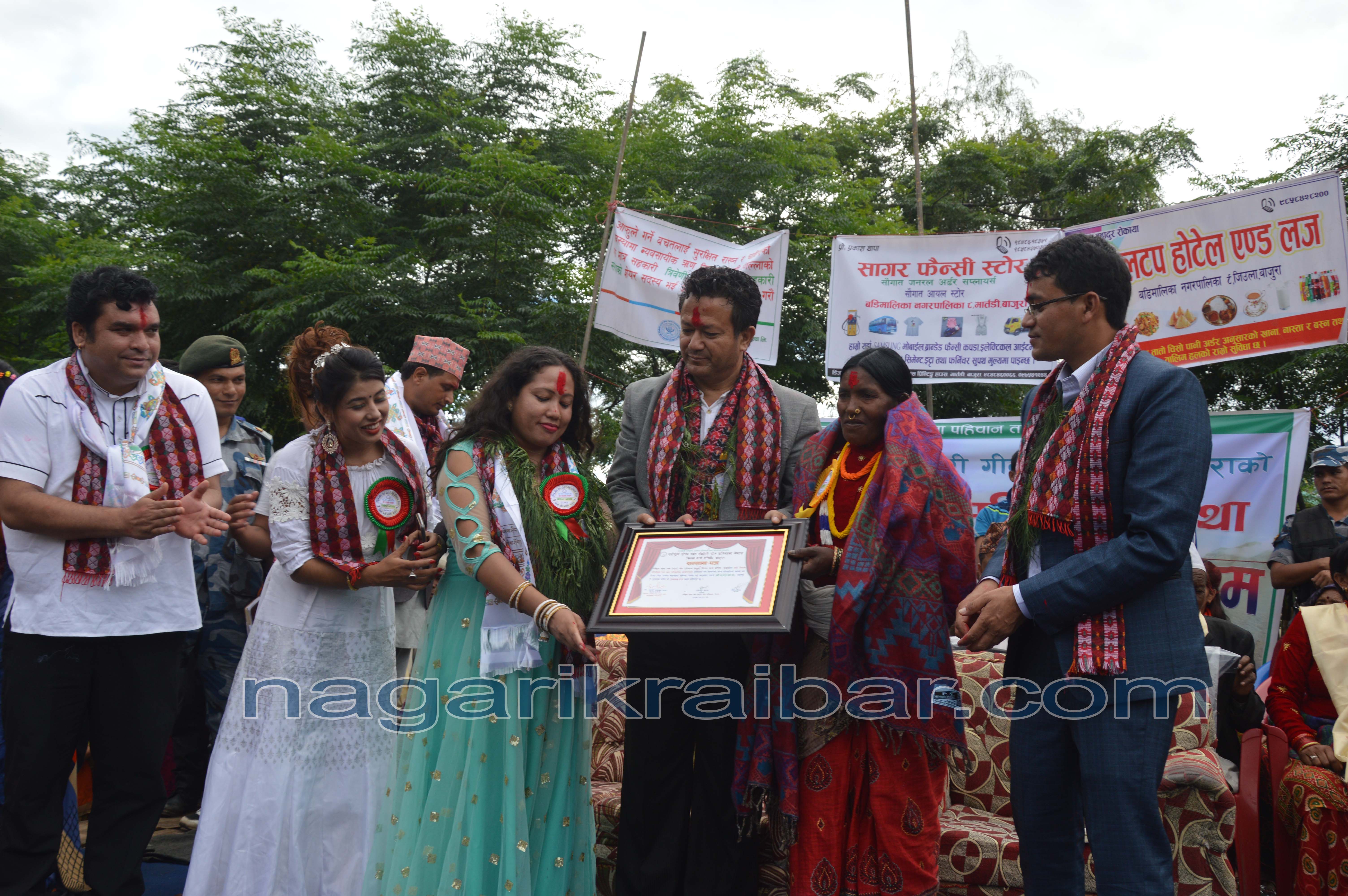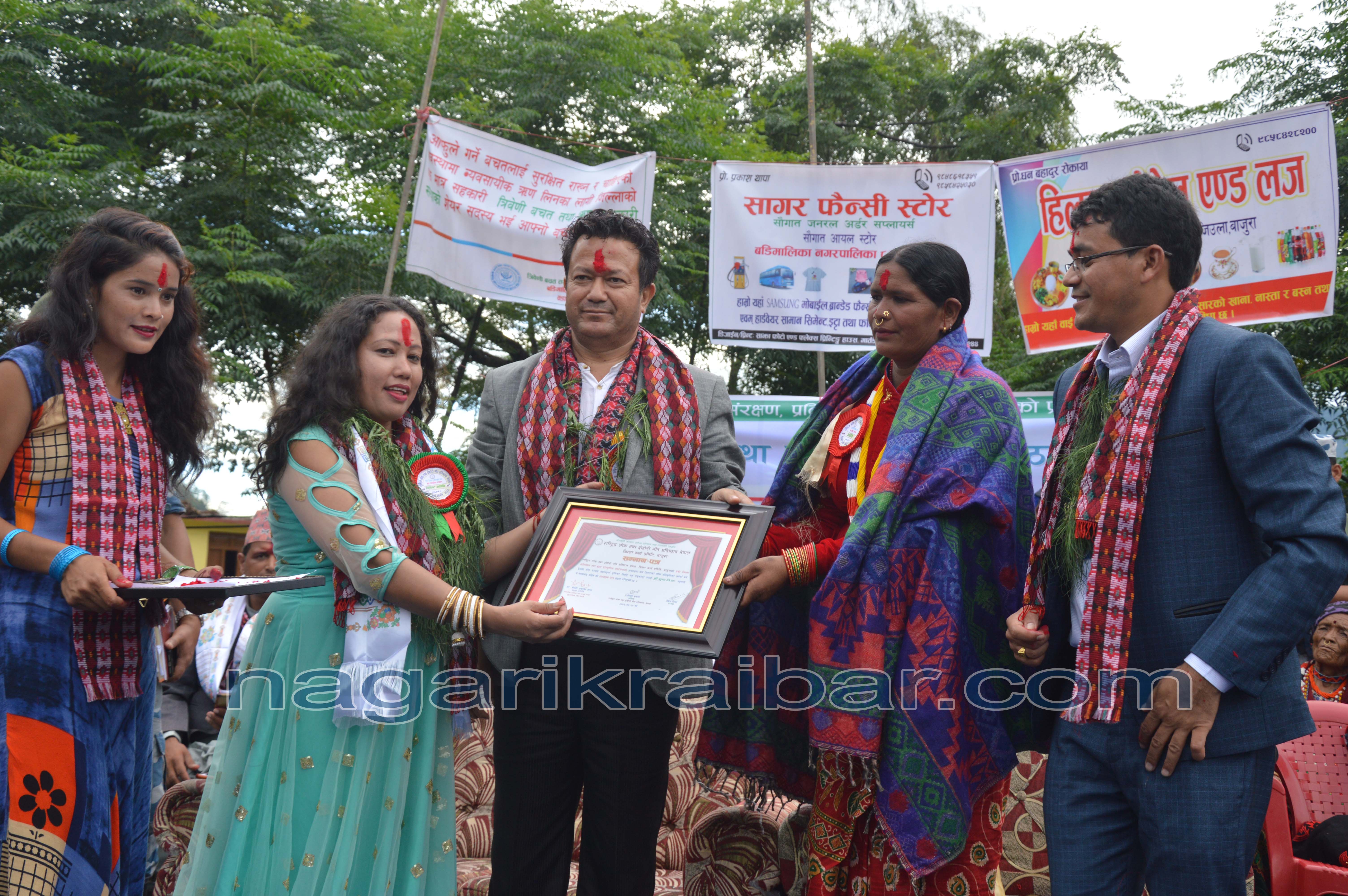 उनीहरु तीनै जनालाई सुदूरपश्चिम प्रदेशका आन्तरिक मामिला तथा कानुनमन्त्री प्रकाश शाह र लोक–दोहोरी गीत प्रतिष्ठान नेपालकी केन्द्रिय महिला सचिव राधिका हमालले दोसल्ला ओडाएर सम्मानित गरेका हुन् ।