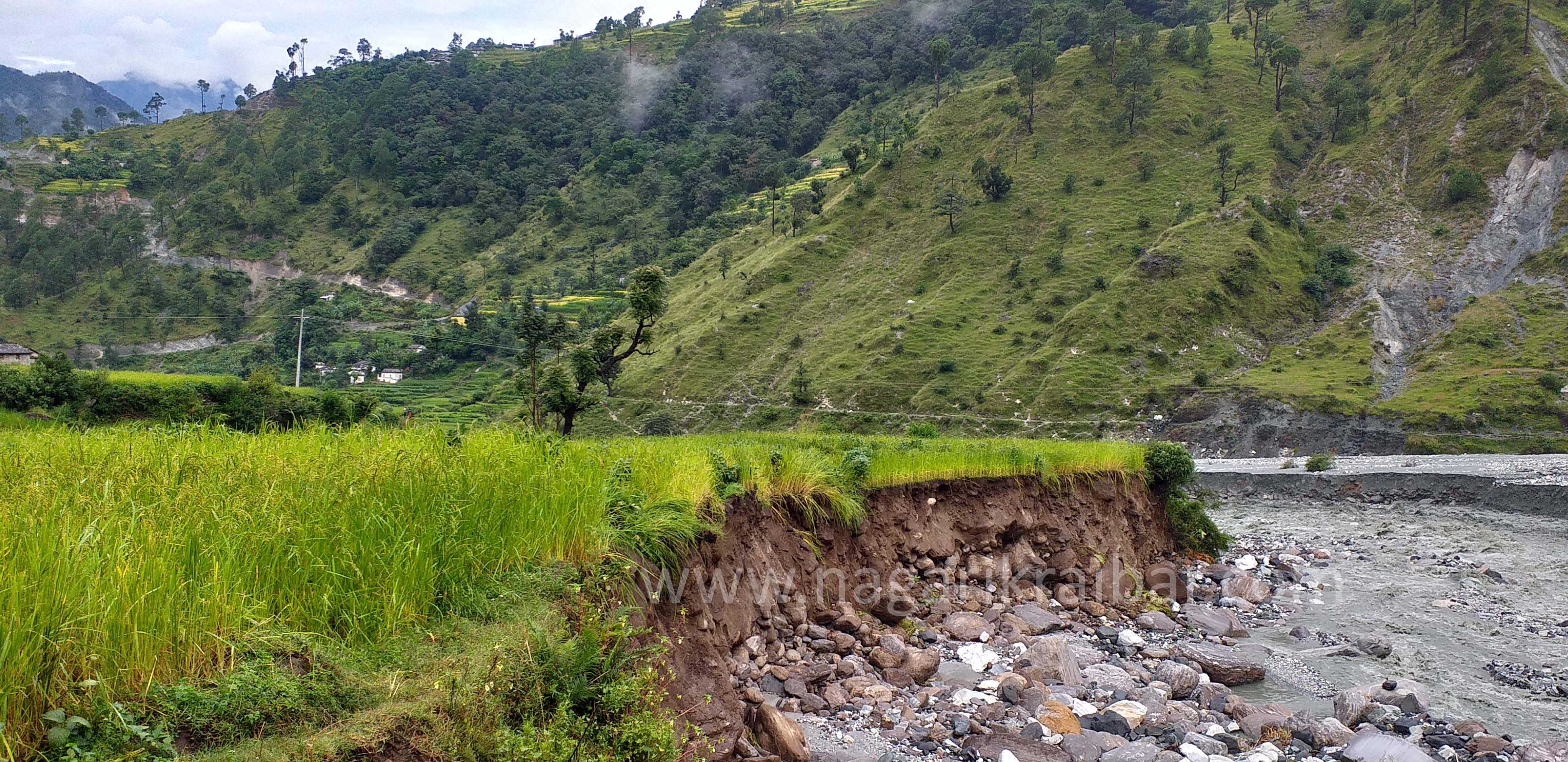 बर्षायाम सकिने समयमा भदौरे झरी बढेपछि खेती योग्य जमिन तथा दर्जनौँ बस्तीहरु जोखिममा रहेका छन् ।