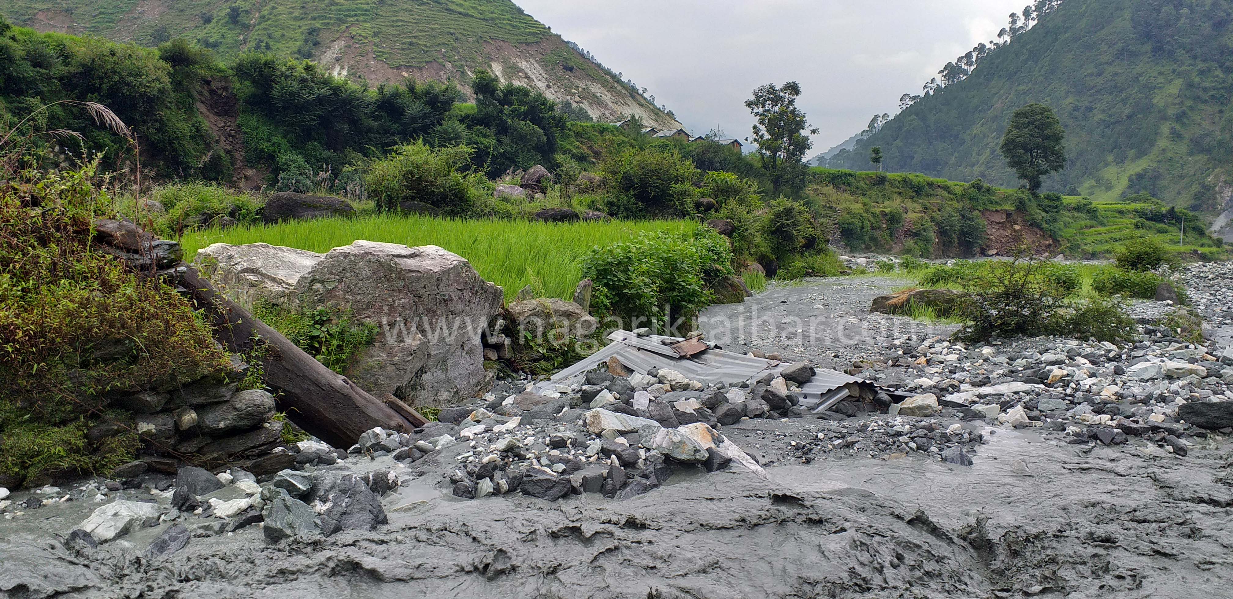 त्यस्तै आसपासमा रहेका उखाडी र गडखेतमा रहेका घर तथा छनाहरु उच्च जोखिमा रहेका छन् । खोलाको कटान बढ्न थालेपछि बस्तीबाट पशुचौपाय र अन्य सामानहरु स्थानीयले सुरक्षित स्थान तर्फ सारेका छन् ।