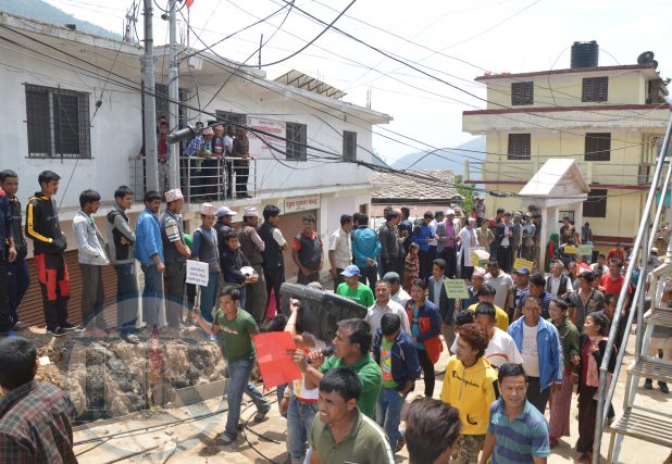 बुधबार नगरबासीहरुद्धारा खानेपानीका, भाडा, वर्तन, पाईपलाईन सहित बजार परिक्रमा गर्दै नगरपालिकाको कार्यालयमा तालाबन्दी गरेका छन् ।