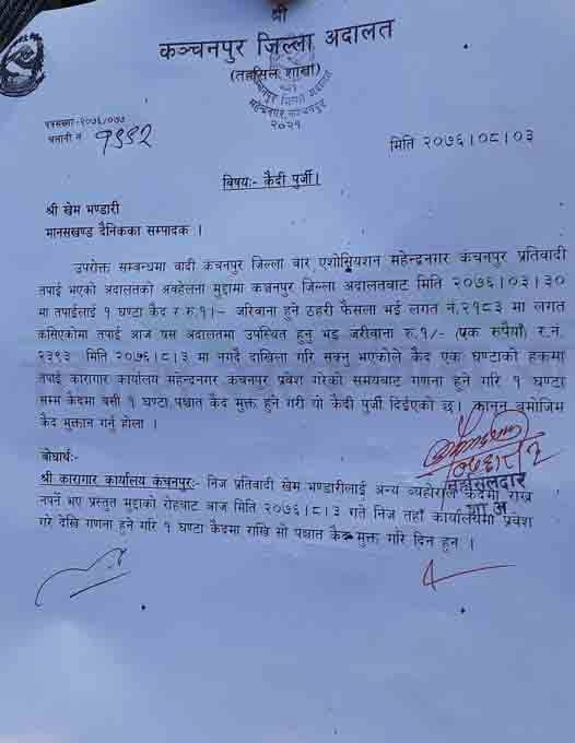 पत्रकार खेम भण्डारीको कैदी पुर्जी