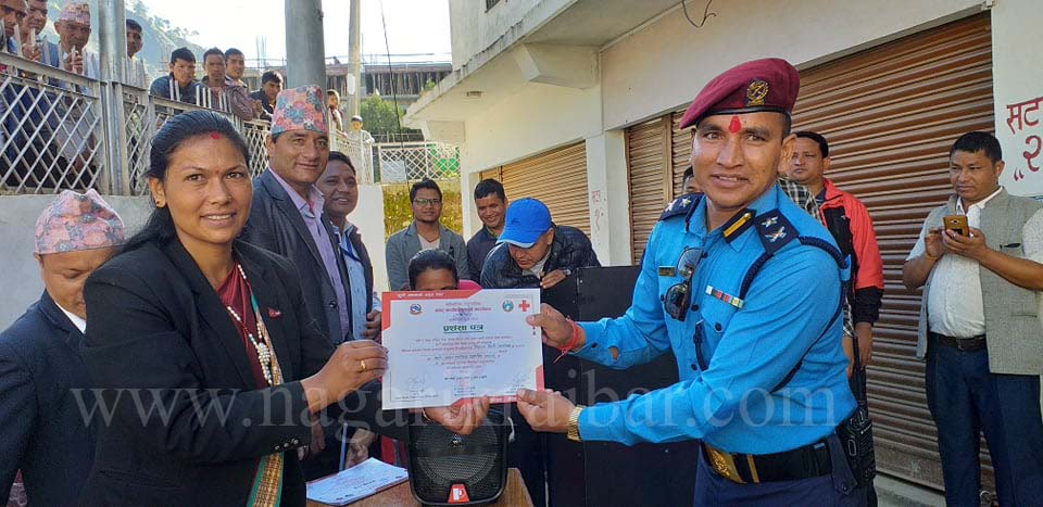 प्रशंसा प्रत्र प्रदान गरिदै । तस्बिर : प्रमित बि क