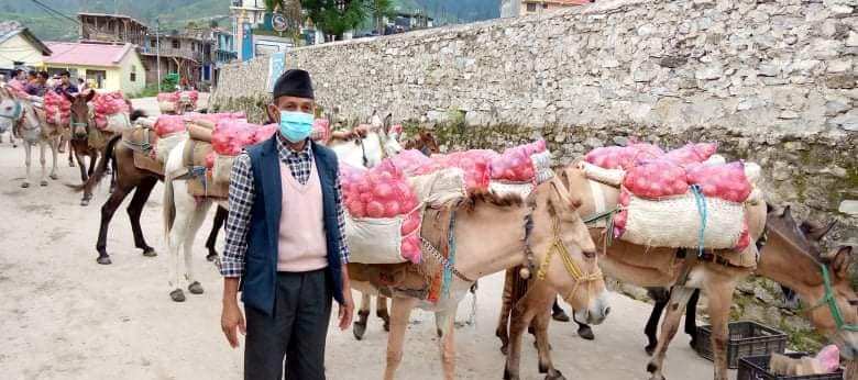 बाजुरा २४ साउन । कृषि ज्ञान केन्द्र बाजुराले स्वामीकार्तिक खापर गाउँपालिका वडा नं १ बाहुनी गाउँमा उत्पादित प्याज खच्चडमार्फत ढुवानी गराई बाजुरा जिल्लाको सदरमुकाम मार्तडी लगाएतका स्थानीय बजारहरुमा पुगाईएको छ ।