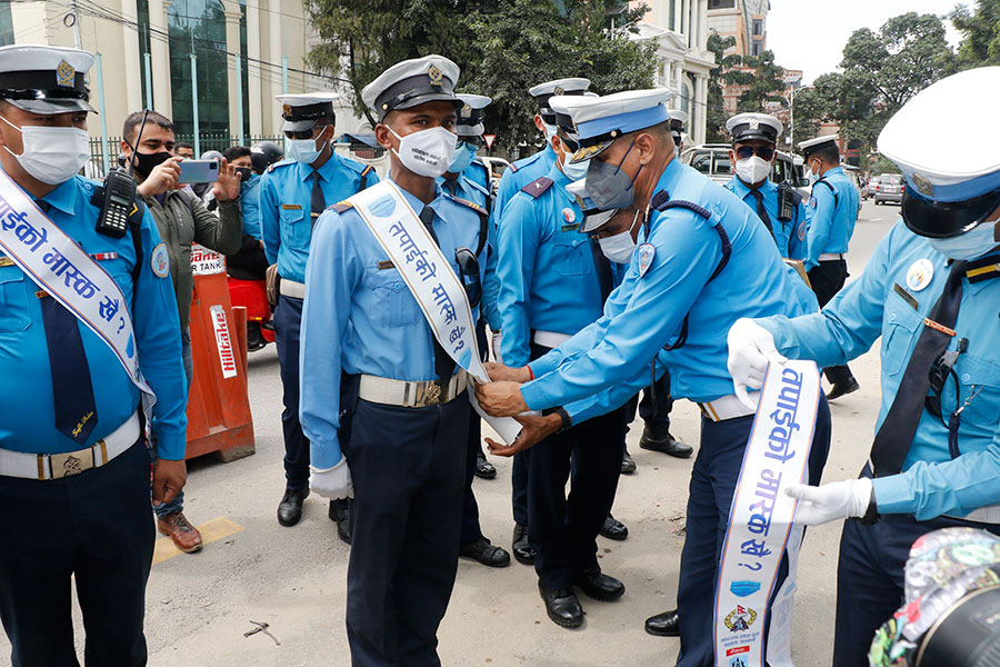 उक्त अभियानको ट्राफिक प्रहरी महाशाखाका एसएसपी जनक भट्टराईले रिबन न्युरोड गेटमा खटिएका ट्राफिक प्रहरीहरुलाई लगाइ दिएर कार्यक्रमको शुभारम्भ गरेका हुन् ।