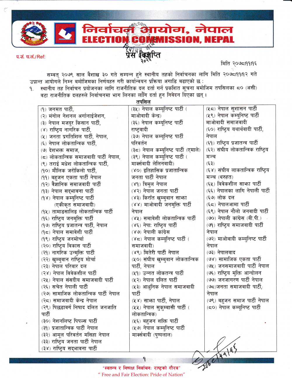 • स्थानीय तह निर्वाचनका लागि ७९ दललाई मान्यता